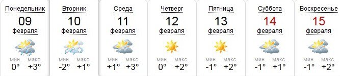 Сегодня ночью, 10 февраля температура может упасть до - 9 °. Днем синоптики прогнозирует от -3 ° до+2 °. Кроме того выпадет снег. При этом ожидается штормовой северо-восточный ветер 7 – 12 м/с, а местами 15-20 м/с.