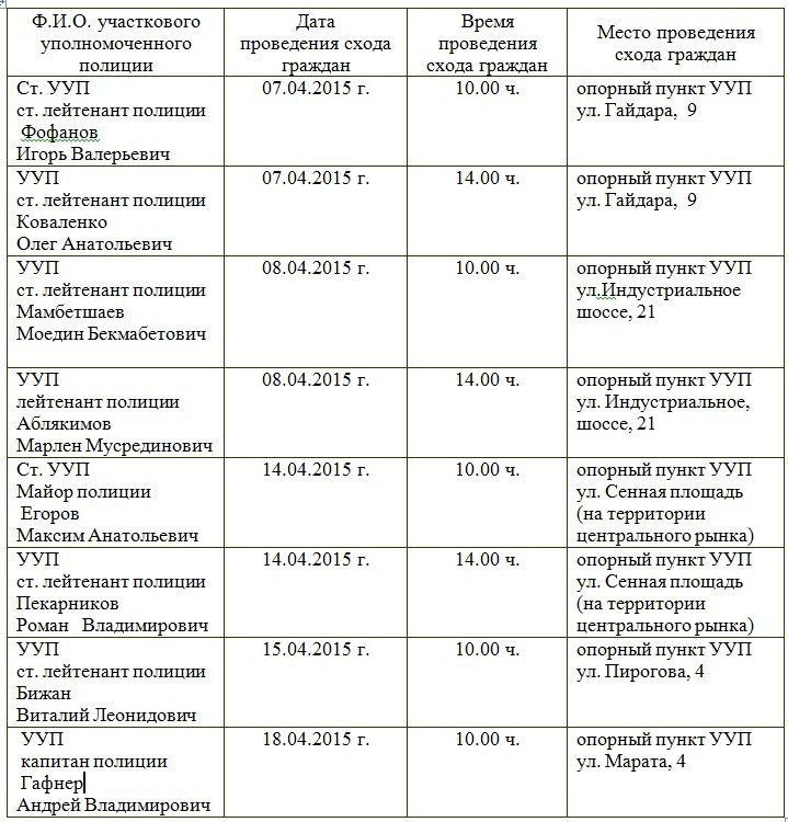проведения схода граждан участковыми уполномоченными полиции