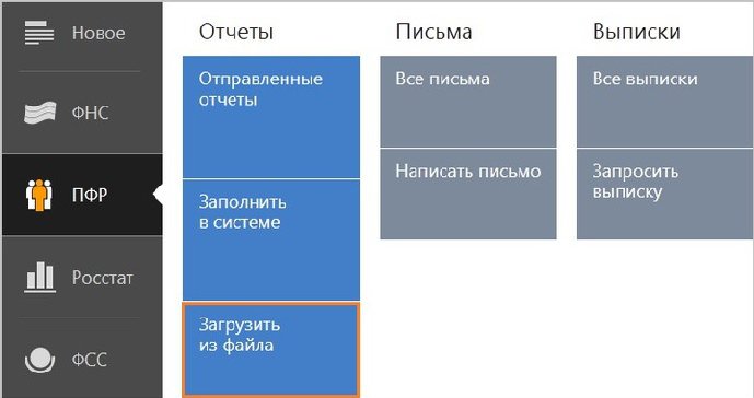 Выбрать меню ПФР: