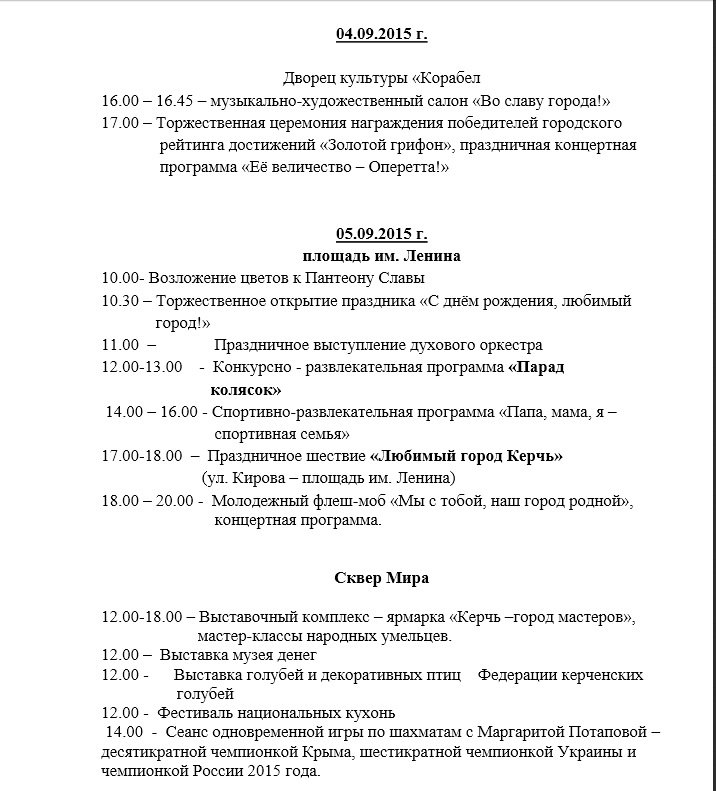 В Керчи, с 4 по 6 сентября пройдут праздничные мероприятия, посвященные Дню города. Об этом сообщает пресс-служба администрации Керчи, - передает Керчь.ФМ