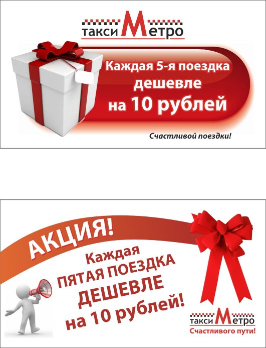 Впервые в городе такси «Метро» проводит акцию!Теперь каждая пятая поездка в такси «Метро» будет на 10 руб. ДЕШЕВЛЕ.