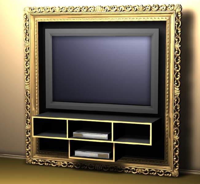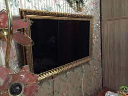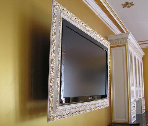 В багетную раму можно оформить не только телевизор, но и телевизионную нишу или портал.