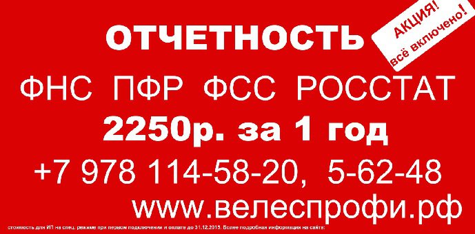 "ВСЁ ВКЛЮЧЕНО!" - выпуск электронной подписи (ЭЦП), выдача рутокена, установка системы и Вы сможете подготавливать и отправлять отчеты по каналам связи в ФНС, ПФР, ФСС и Росстат* в течение года....