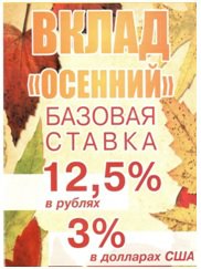 На сегодняшний день КБ «Финансовый стандарт» (ООО) проводит АКЦИЮ среди населения, запустив новый Вклад «Осенний».