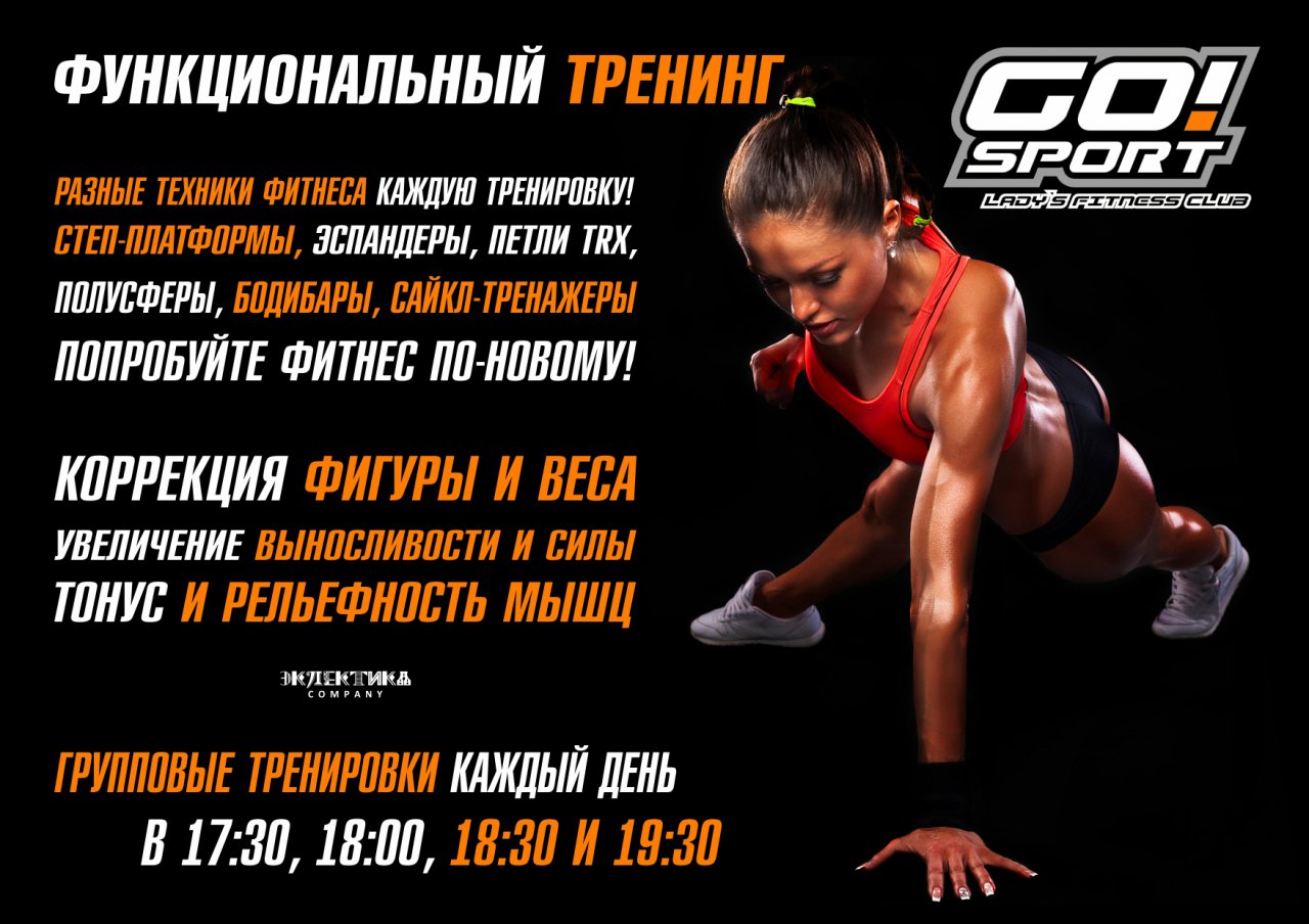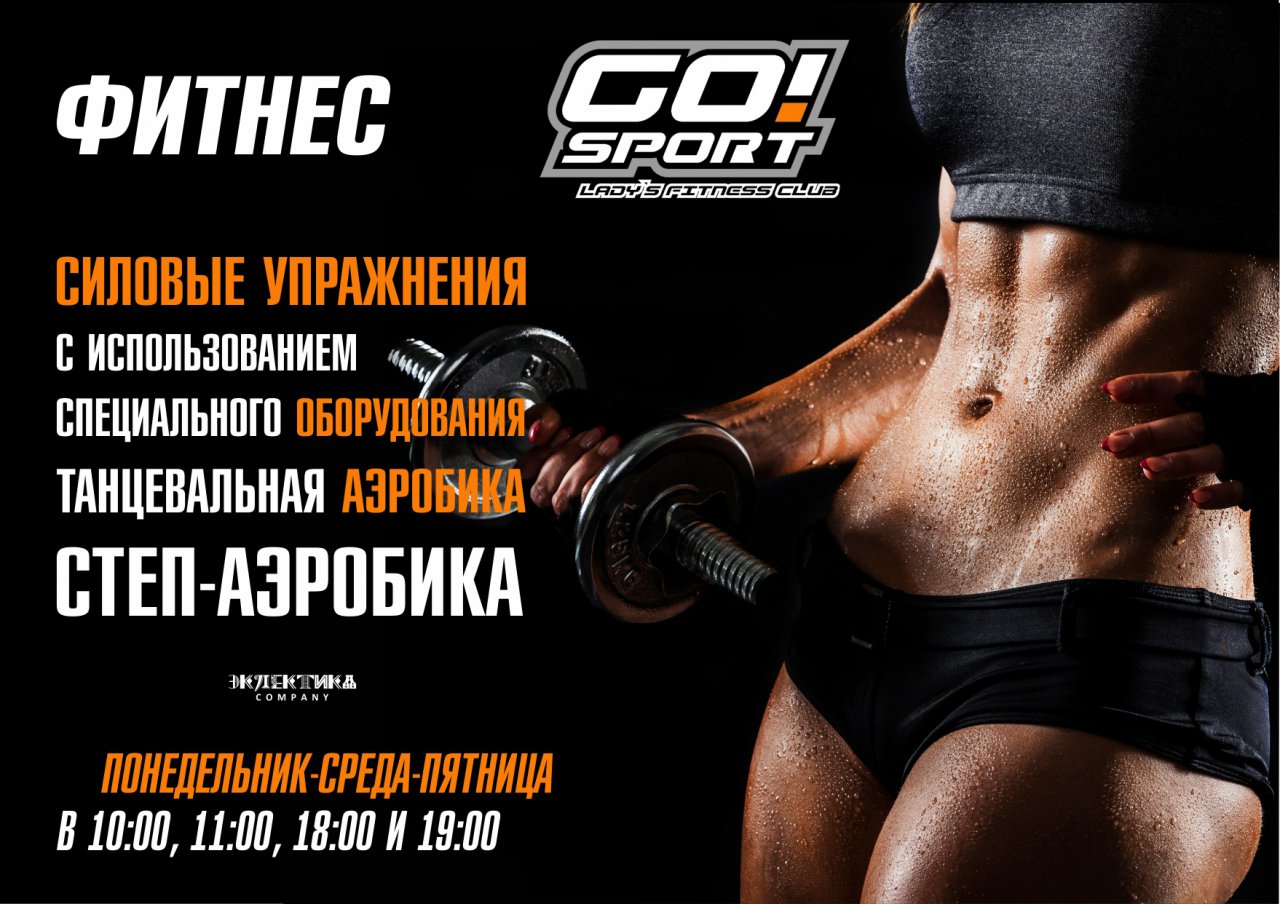 GO!Sport – это стильный и современный мир вашего красивого тела, комфорта и просто приятного времяпровождения. Здесь Вы можете насладиться максимальным удобством во всем. Здесь хочется не просто заниматься, а получать от процесса настоящее удовольствие! Широкий спектр возможностей позволяет нашим прекрасным посетительницам клуба поддерживать себя в форме, сочетая физическую нагрузку, косметические процедуры и правильное питание – и все это не покидая стен женского фитнес клуба.