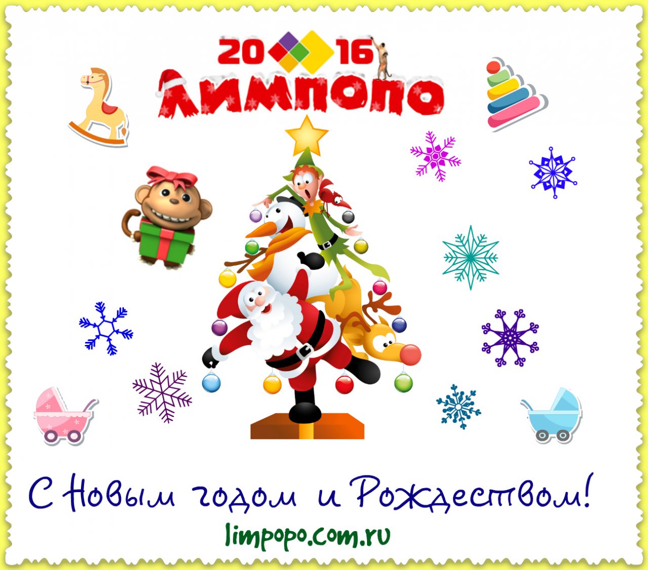 Торговая сеть ЛИМПОПО поздравляет всех с наступающими новогодними праздникам и желает всех благ в новом году! А если кто-то еще не успел приобрести подарки к Новому году, мы ждем Вас по адресам: Магазин «Велик» ул. Гайдара, 9, магазин «Лимпопо» ул.Советская, 26.