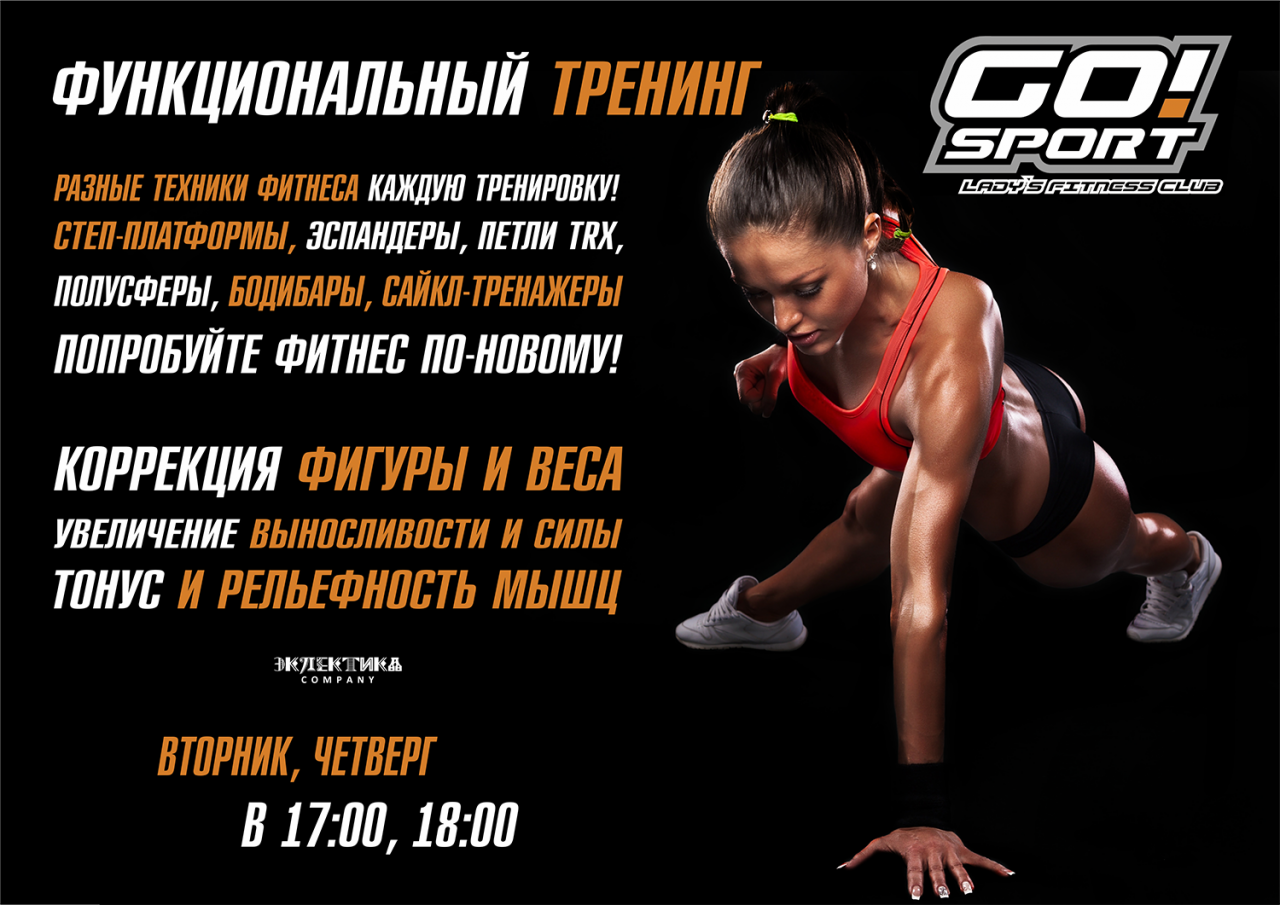 Женский фитнес клуб GO!Sport – это стильный и современный мир вашего красивого тела, комфорта и просто приятного времяпровождения. Здесь Вы можете насладиться максимальным удобством во всем. У нас достаточно широкий выбор групповых тренировок, а также разовых занятий. И немало занятий в утреннее время.