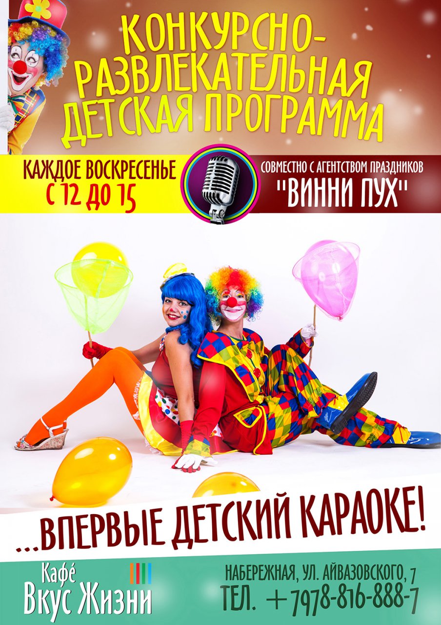 Просто приходите в “Кафе Вкус Жизни” уже в эту пятницу и... ПОЙТЕ! Лучшего исполнителя выберут организаторы проекта - жюри! Больше информации по телефону: +7-978-816-888-7