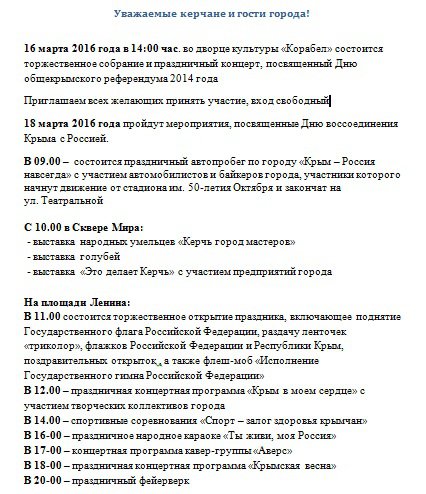План мероприятий ко Дню присоединения Крыма к РФ в Керчи