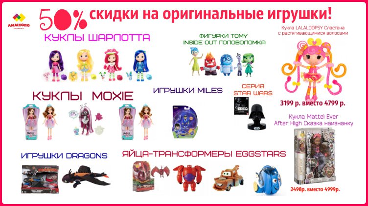 Только в розничных магазинах ЛИМПОПО скидки 50% н оригинальные игрушки!
