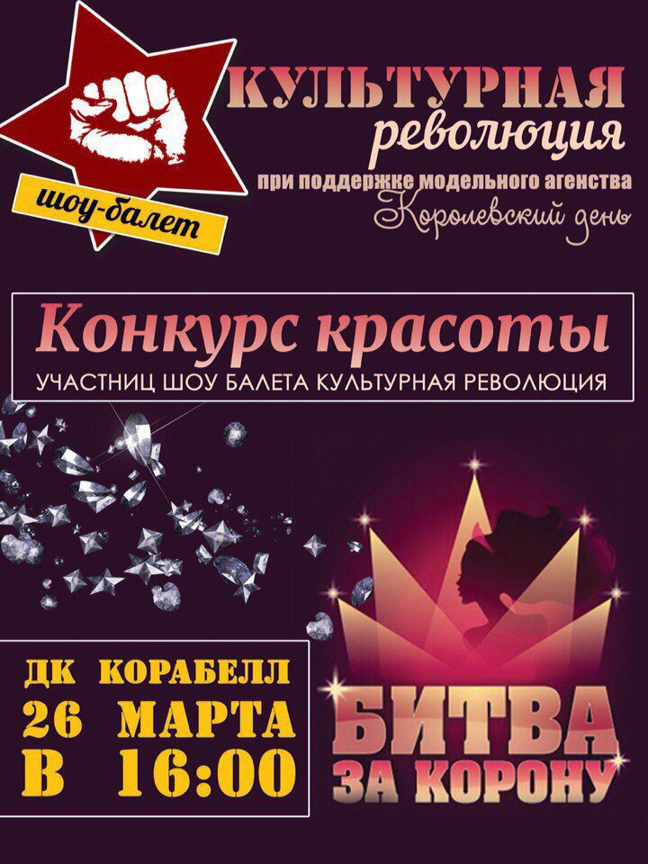 Шоу-балет «Культурная революция» приглашает всех Керчан окунуться в мир красоты и таланта. Такое событие в Керчи пройдет впервые, 54 участницы шоу-балета сразятся за главную корону на сцене ДК Корабел.
