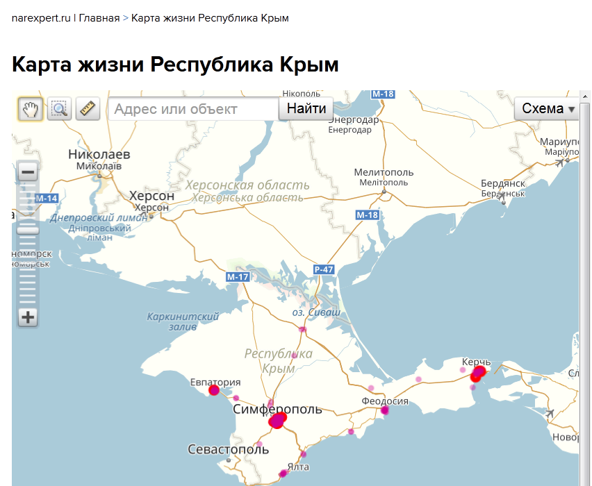 "Карта жизни" по Республике Крым позволяет определить места концентрации ДТП и их местоположение. По данным ГИБДД, в прошлом году на территории полуострова произошло 1765 ДТП, в которых погибли 343 человека и 2330 получили ранения.