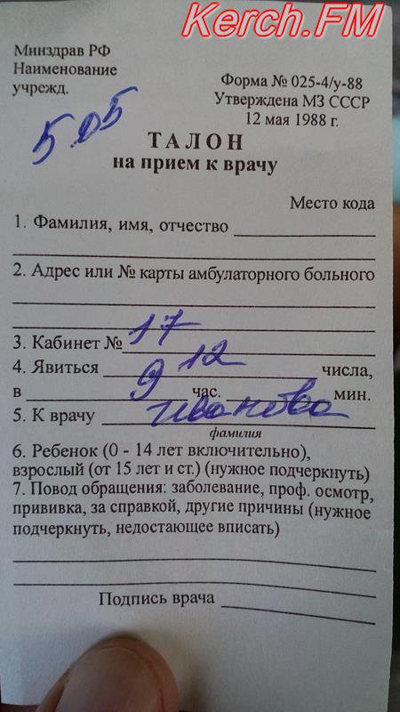 Керчанин сможет попасть к участковому врачу через две недели