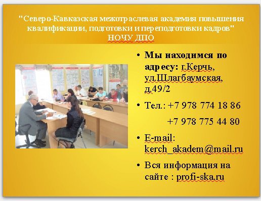 Керченский филиал «Северо-кавказской межотраслевой академии повышения квалификации, подготовки и переподготовки кадров» НОЧУ ДПО