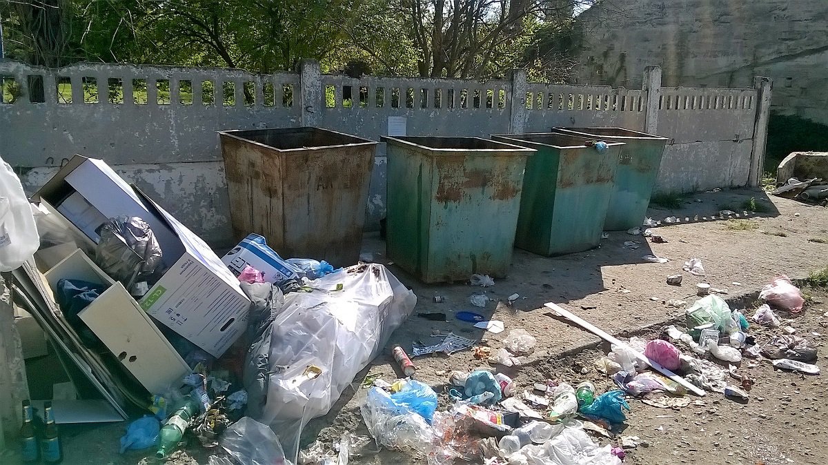 Рядом с центром Керчи вокруг контейнера - свалка мусора