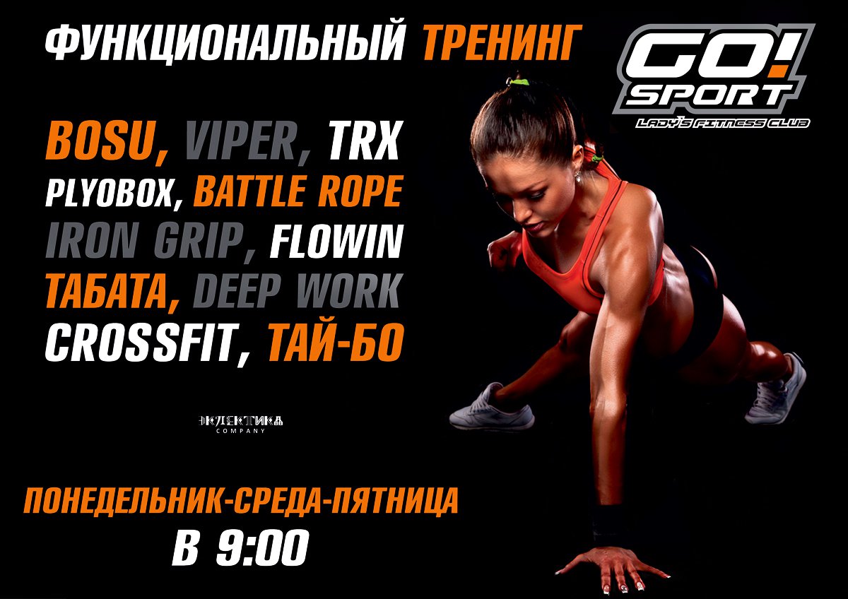 Фитнес – это комплекс физических и танцевальных упражнений, целью которых является улучшение фигуры и настроения. Включает в себя занятия степ-аэробикой, танцевальной аэробикой, силовые упражнения с использованием специального оборудования: бодибары THE BODY BAR, полусферы BOSU, степ-платформы THE STEP, фитболы, гантели, а также – ТОЛЬКО В GO!Sport – занятия на СЛАЙДАХ! Тренировки способствует сжиганию подкожного жира, развивает общую выносливость и силу.