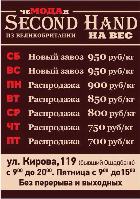 Магазин Секонд Хенд «Чемодан» ул Кирова, 119 (бывший Ощадбанк)