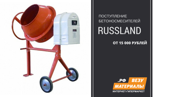 Бетоносмеситель Russland RCM 180 л – 16 190 рублей.