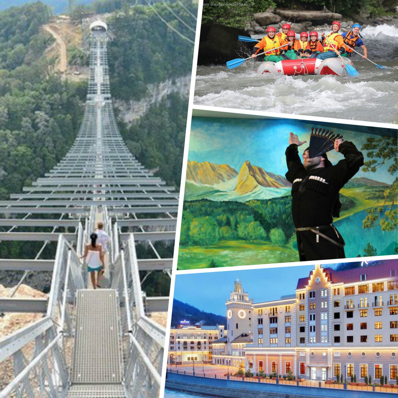 2 день. Размещение в Сочи. Легендарный Олимпийский парк, гольф-кары. Рафтинг (сплав по горной реке) – весело, ярко, безопасно! Скай-парк – самый длинный подвесной мост в мире!
