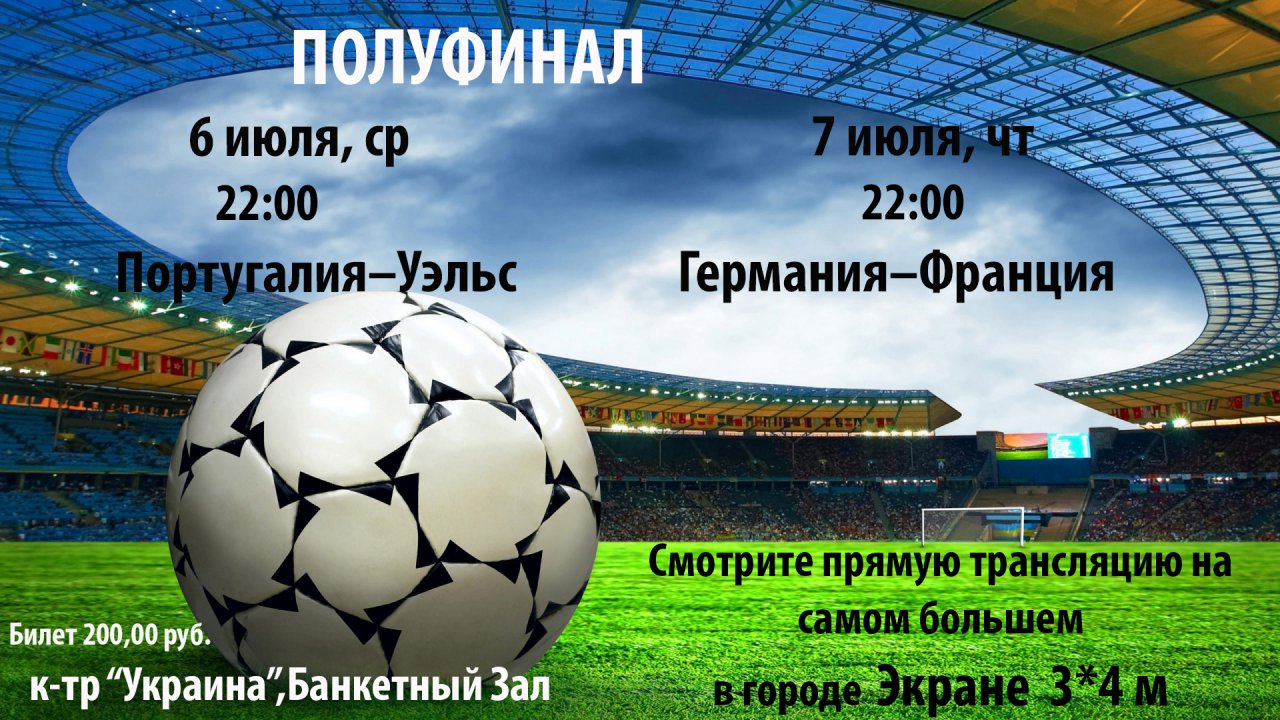 на просмотр матчей ЕВРО-2016 на самом большом экране в Керчи 3х4 м в банкетном зале!!!