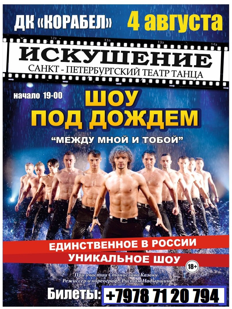 4 августа на сцене КДК «Корабел» - единственное в России уникальное «Шоу под дождем». Впервые в Керчи. Не пропустите!