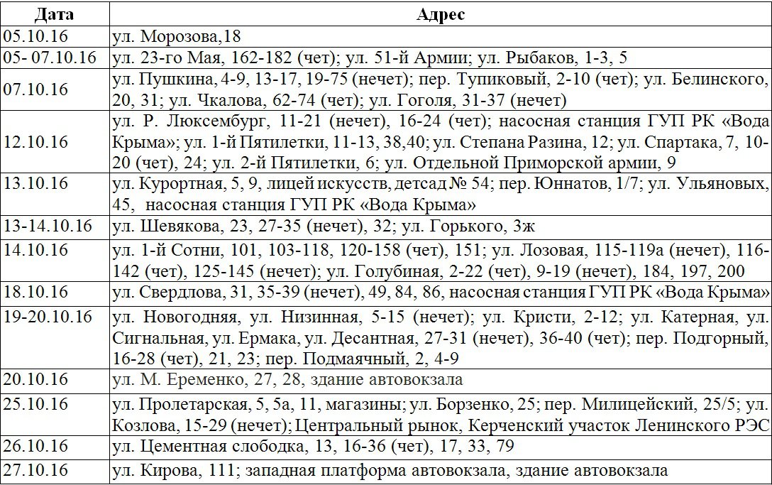 ГУП РК «Крымэнерго» сообщает о том, что в связи с плановым ремонтом электрооборудования в октябре с 8 до 17 часов будут происходить отключения линий электропередачи согласно нижеприведенному графику, - передает Керчь.ФМ.