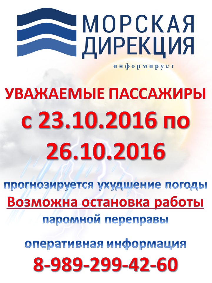 На Керченской паромной переправе, с 23 по 26 октября прогнозируется ухудшение погодных условий. Как сообщает пресс-служба ООО «Морская дирекция», возможна остановка работы паромной переправы, - передает Керчь.ФМ