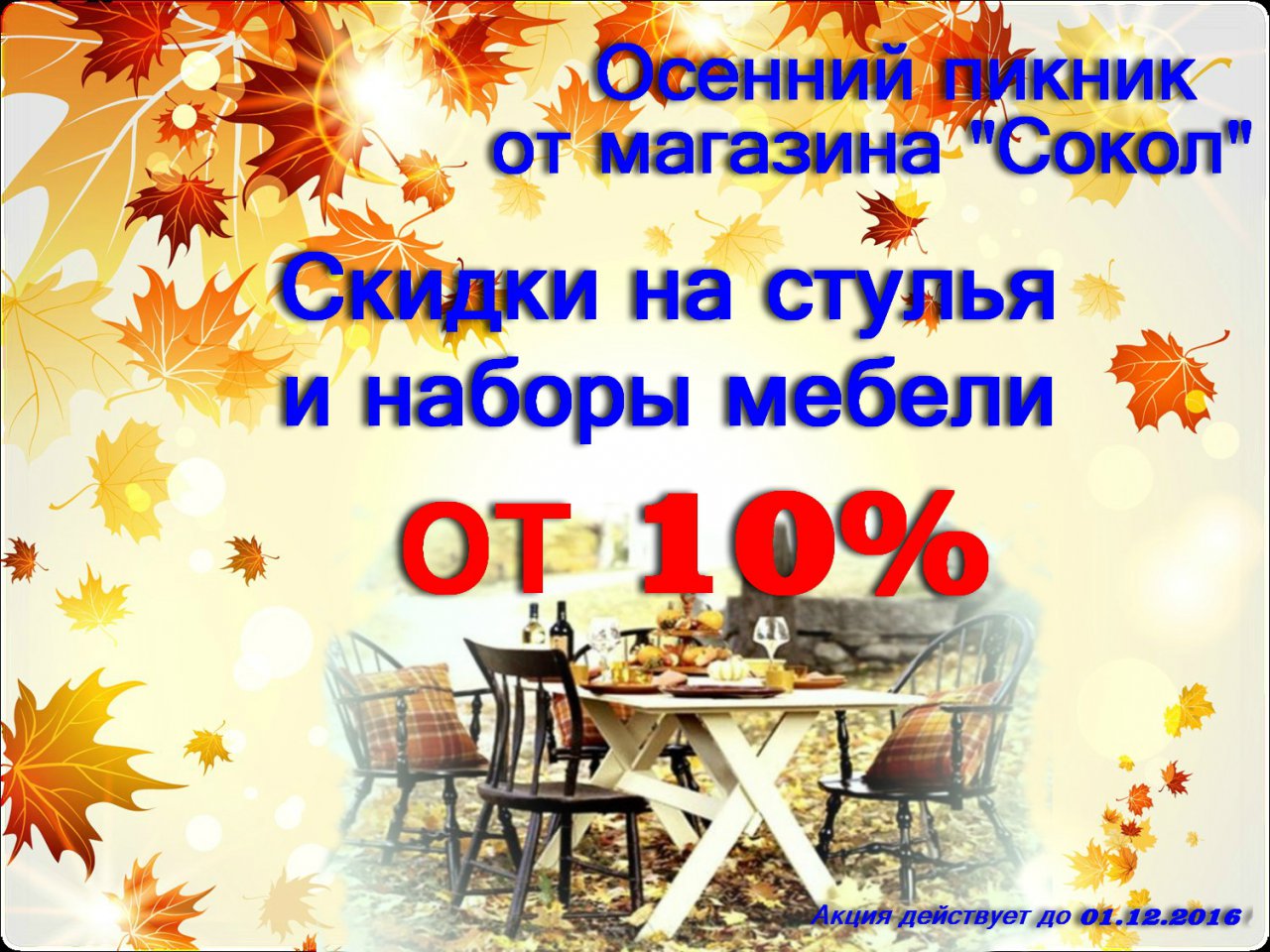 Внимание! В магазине «Сокол» до 1 декабря 2016 года действует скидка 10% на палатки, кемпинговую мебель, рыболовные кресла и стулья.