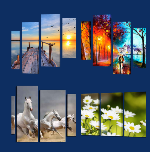 Мультипанели состоят из нескольких частей (двух, трех, четырех) каждая из которых изображена на отдельном холсте.