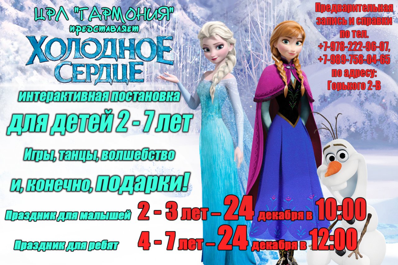 Герои мультфильма «Холодное Сердце» приглашают Вас побывать в новогодней сказке!