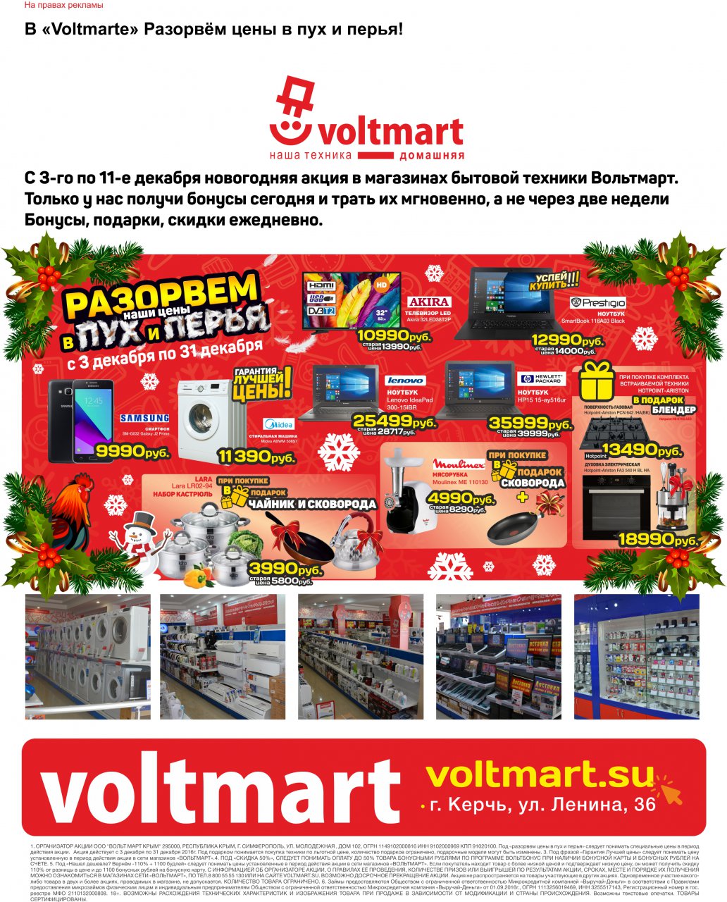 С 3-го по 11-е декабря новогодняя акция в магазинах бытовой техники "Вольтмарт". Только у нас получи бонусы сегодня и трать их мгновенно, а не через две недели.