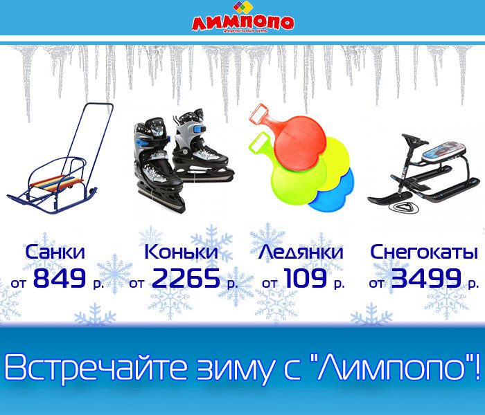 Санки, ледянки, коньки: готовьтесь к зимнему отдыху с «Лимпопо»!