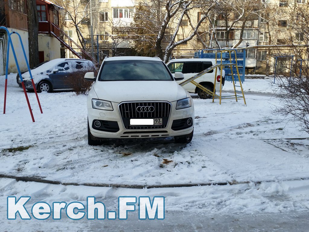 В редакцию Керчь.ФМ постоянный читатель прислал фотографию и сообщил, что во дворе по улице Кирова, 11 один из водителей паркуется посреди детской площадки.