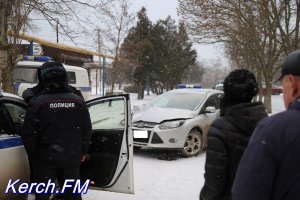В Керчи, в районе КУОРа, 29 января, напротив кафе «Магнолия» задержали водителя автомобиля «Форд». По информации корреспондента Керчь.ФМ, который выехал на место, водитель в наручниках находится в автомобиле сотрудников ГИБДД. Также на месте стоит его разбитая иномарка и еще два автомобиля сотрудников полиции.