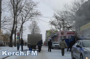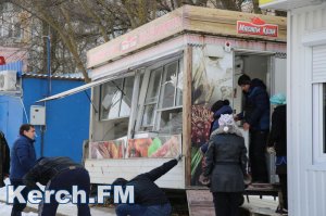 В Керчи, 31 января на улице Генерала Петрова, грузовик въехал в ларек. Как Керчь.ФМ рассказали очевидцы, грузовик проезжая мимо колбасного ларька зацепился за его козырек и начал его тянуть. Из-за скользкой дороги водитель машины не смог вовремя затормозить.