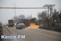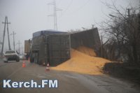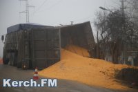 В Керчи перевернулся прицеп с кукурузой
