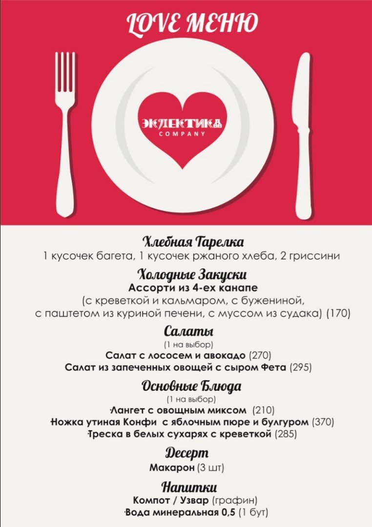 - праздничный LOVE ужин от бренд-шефа сети "Эклектика", СЕРГЕЯ ВИНОКУРОВА;