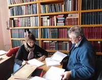 В научной библиотеке ГБУ РК «Восточно-Крымский историко-культурный музей-заповедник» с книгами Керчь-Еникальского градоначальства работают исследователи Института этнологии и антропологии РАН Стефания Дзини и Никита Хохлов.