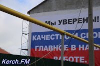 В Керчи на домах для переселенцев с моста повесили слоган «Мы уверены! Качество и сроки - главное в нашей работе». Как передает корреспондент Керчь.ФМ, у некоторых жителей данная надпись вызвала насмешку.