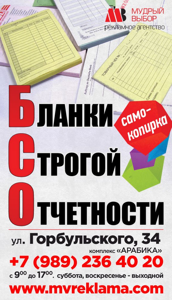 Услуги по печати БЛАНКА СТРОГОЙ ОТЧЕТНОСТИ предлагает рекламное агентство "Мудрый Выбор" формата: А6, А5 и др. на самокопирующиеся бумаге с нумерацией состоящий минимум от 2х слоев с клеевым креплением с одной стороны.