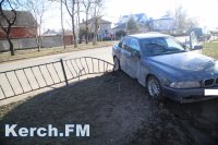 В Керчи, 16 февраля на улице Кирова, автомобиль «BMW» въехал в ограждение, - передает Керчь.ФМ.
