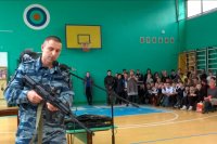 В преддверии Дня Защитника Отечества сотрудники полиции, вневедомственной охраны войск Нацгвардии и спецподразделения ОМОН «Беркут» провели урок мужества для учащихся школы № 4 в Керчи.