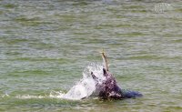 Экологи объясняют это улучшением условий охоты дельфинов на сингиля и лобана. Количество рыбы в районе стройки выросло в 10 раз.