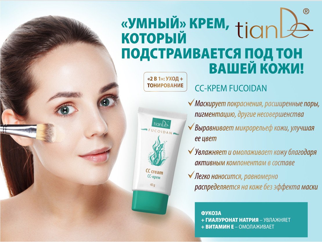 СС крем Fucoidan 40g: 2в1 уход + тонирование(993руб):