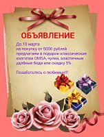 До 10 марта при покупке на сумму более 5 000 рублей предлагаем в подарок классические колготки OMSA,