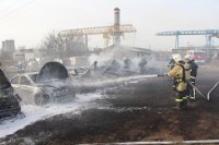 В 16.16 час. пожар, площадь которого составила 35 кв.м. был полностью ликвидирован. В результате чрезвычайного происшествия полностью сгорело 14 и 6 легковых автомобилей пострадало. Жертв и пострадавших нет. Причины возгорания устанавливают эксперты.
