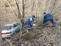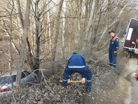 По прибытии к месту посредством шанцевого инструмента, бензопилы и такелажного оборудования спасатели успешно отбуксировали автомобиль на дорожное полотно. Кроме того, на месте аварии спасатели обеспечили пожарную безопасность. Водитель машины в медицинской помощи не нуждался.