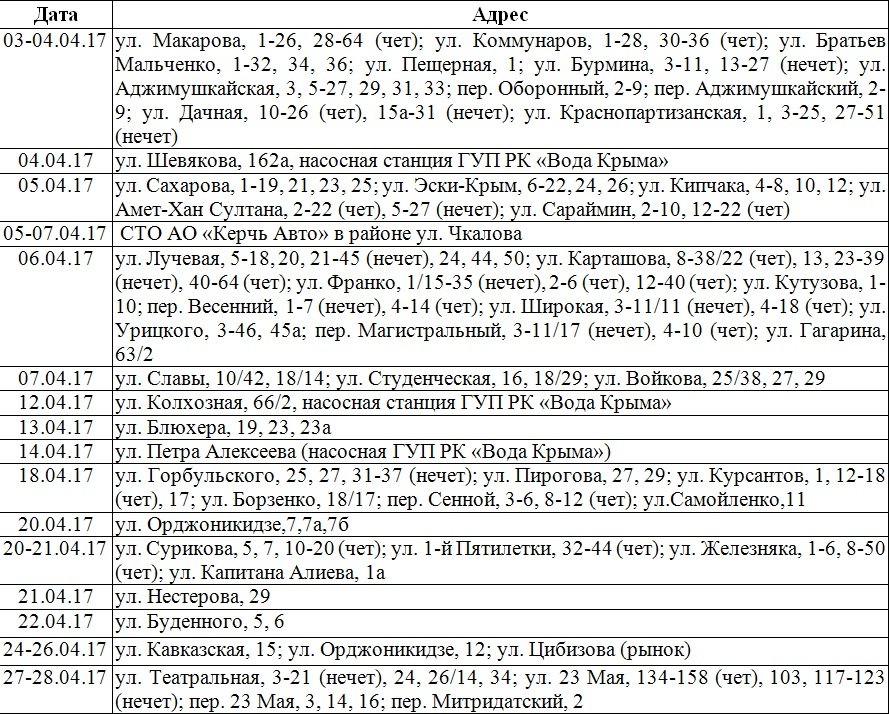 ГУП РК «Крымэнерго» сообщает о том, что в связи с плановым ремонтом электрооборудования в апреле с 8 до 17 часов будут происходить отключения линий электропередачи согласно нижеприведенному графику, - передает Керчь.ФМ.