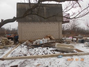 Рядом с домом залит фундамент под пристройку.