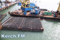 Точно такие же трубы журналисты сайта Керчь.ФМ видели на стройке Керченского моста в районе, где мост будет соединять судоходная арка. Эти трубы предназначены для того, чтобы защищать стройку от волн во время штормов. Они являются своеобразными волнорезами.